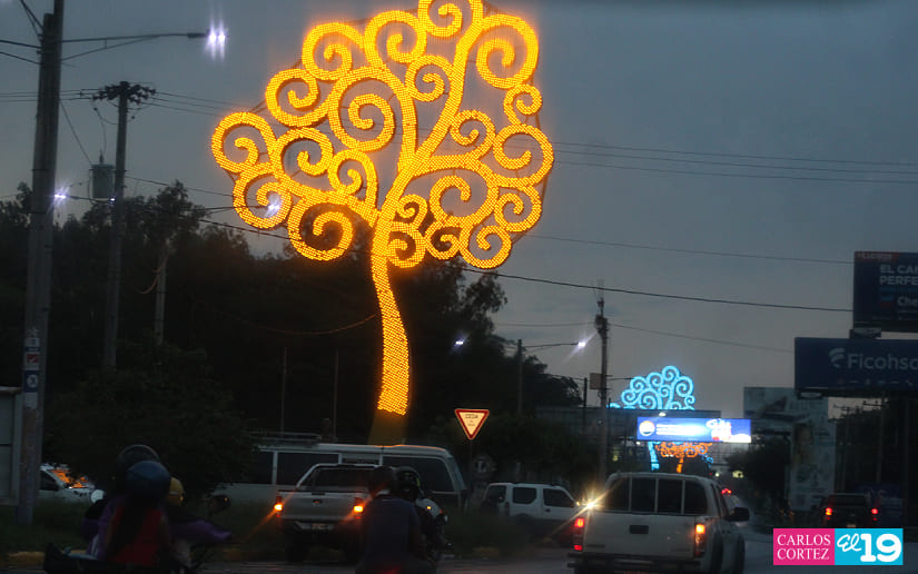 Un total de 16 Árboles de la Vida completamente rehabilitados ya iluminan el tramo entre el Aeropuerto Internacional Augusto C. Sandino y la Planta Mechnikov, en la Carretera Norte.