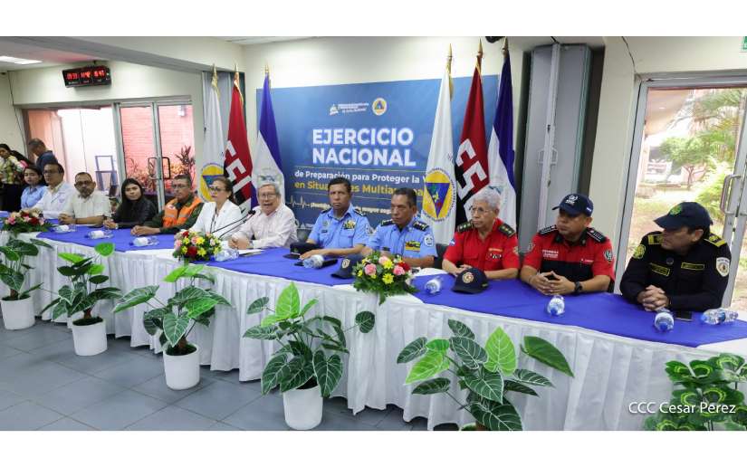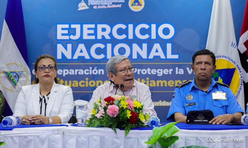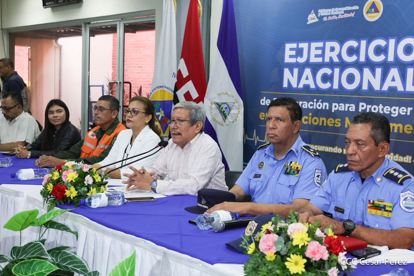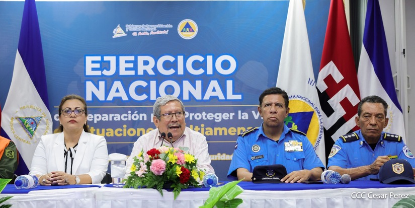 “A nombre de nuestro Presidente Comandante Daniel Ortega y de la Compañera Vicepresidenta Rosario Murillo, hacer una cordial invitación a todos los y las nicaragüenses para que este 27 de junio, a partir de las 10:00 de la mañana, nos convoquemos a participar en este segundo Ejercicio Nacional que ya es parte de la política nacional de gestión de riesgo, que contribuye a seguir fomentando la visión que debemos de tener desde el punto de vista de preparación ante los fenómenos naturales”, dijo González.