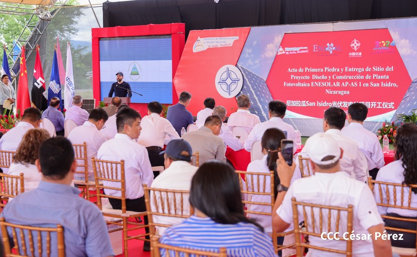 El Gobierno de la República de Nicaragua y China Communications Construction Company realizaron el acto de colocación de la primera piedra y entrega de sitio del acuerdo de diseño y construcción de Planta Solar San Isidro Enesolar AP-AS 1.