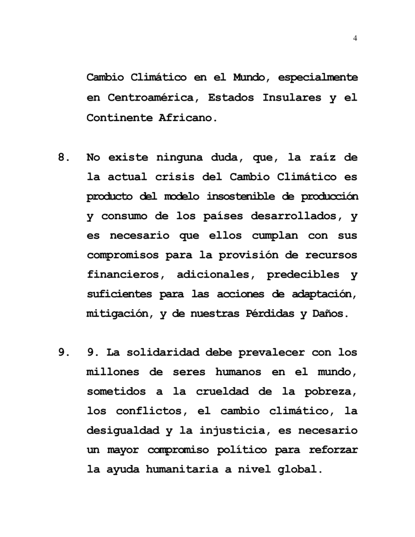 Por otra parte, la Compañera Pichardo, resaltó que no se puede ignorar los más de 3 mil millones de personas amenazadas por el cambio climático, especialmente en nuestra región Centroamérica, los Estados Insulares y el Continente Africano.