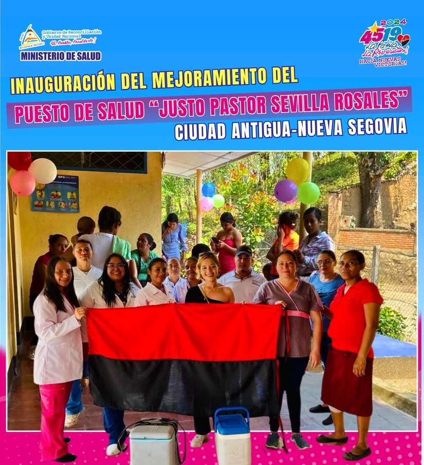 También mañana Viernes 28 de Junio, entregamos mejorado el Puesto de Salud “Justo Pastor Sevilla Rosales”, en la Comunidad El Limón, en Ciudad Antigua, Nueva Segovia, para atender en mejores condiciones a casi dos mil habitantes de cinco Comunidades de ese Municipio (Inversión: 133 mil córdobas).