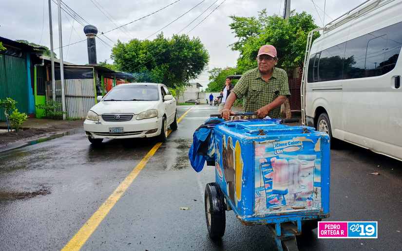 "Nos beneficia bastante tener calles buenas, porque caminamos en calles parejas, sin hoyos, nos cansamos menos y nuestro carrito de helados tiene mayor vida útil. Cuando uno pasa por una calle con hoyos, tenemos que empujar y hacer mayor fuerza para que el carrito se mueva, pero con pavimento el trabajo es más suave", subrayó don Eugenio.
