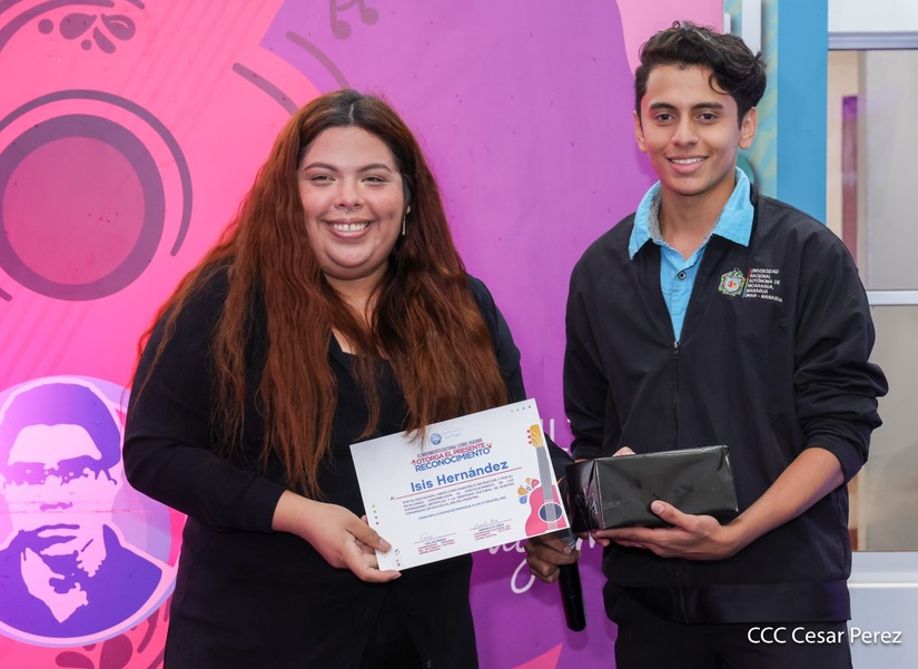 “Estamos cada vez más comprometidos con la música, el arte y la juventud y nuestro pueblo, estamos contentos de recibir este certificado. Somos artistas que hemos dejado nuestra alma, vida y corazón, compartiendo un poco de lo que sabemos con los nuevos artistas, esos chavalos y chavalas que también quieren ser parte de la cultura en Nicaragua”, expresó Isis Hernández.