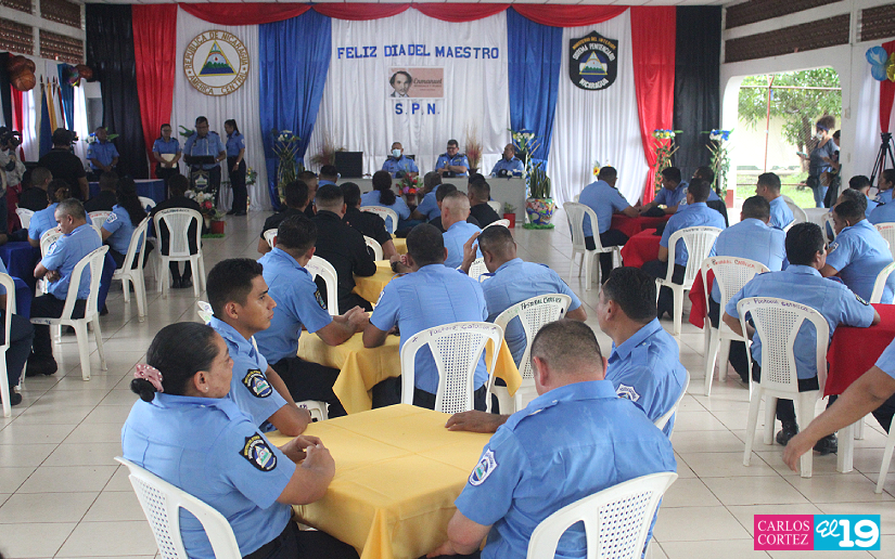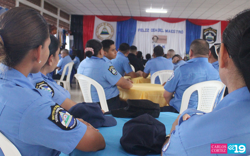 Docentes de la Escuela Penitenciaria Subcomandante Alfonso Quiroz Gómez del Sistema Penitenciario Nacional (SPN) en Tipitapa, celebraron el Día del Maestro Nicaragüense en honor al Héroe Nacional Enmanuel Mongalo y Rubio.