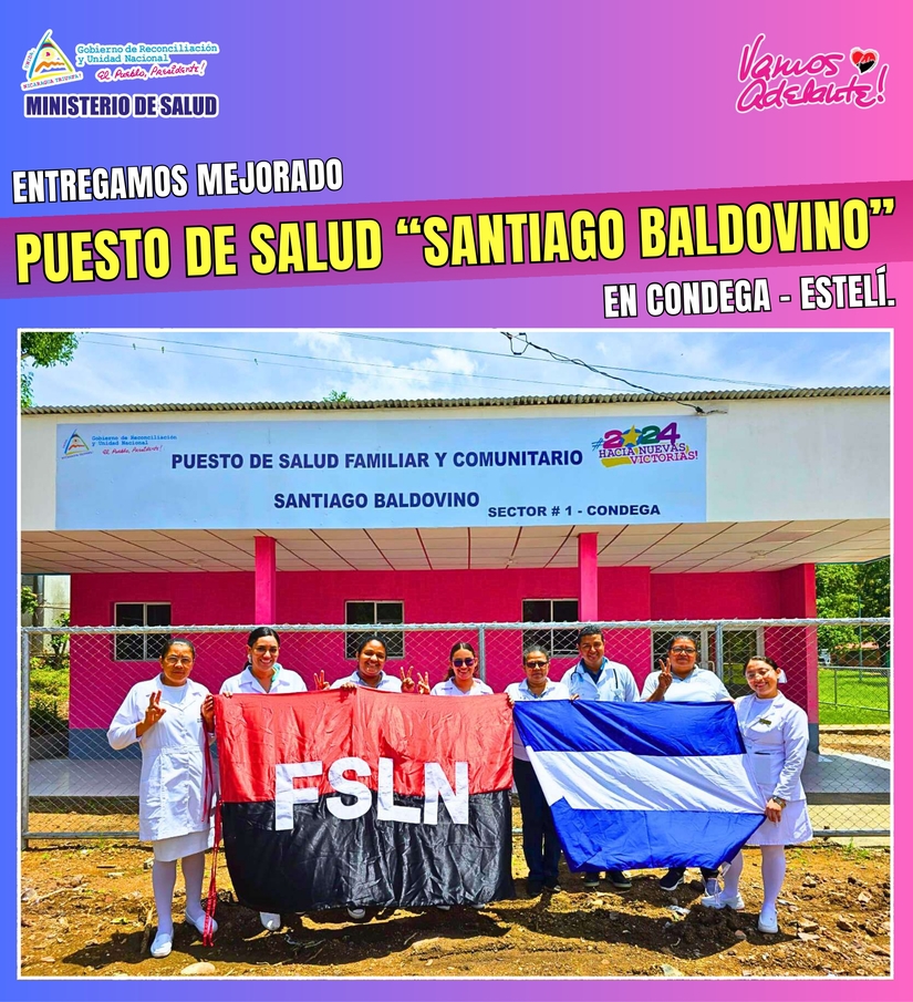 También mañana Miércoles, entregaremos mejorado Puesto de Salud “Santiago Baldovino”, en el Sector 1 del Municipio de Condega-Estelí, para la atención de más de cinco mil habitantes de tres Comunidades de ese Municipio. Inversión 726 mil córdobas.