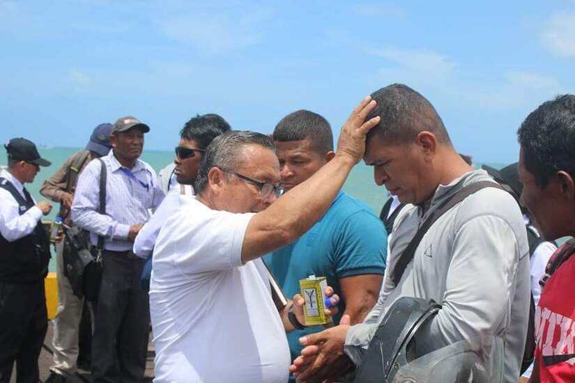 Alrededor de 300 protagonistas entre pescadores artesanales, industriales, dueños de embarcaciones, acopiadores, buzos, cayuqueros, pikineras, pobladores y líderes religiosos se hicieron presentes en las instalaciones del muelle de la ciudad de Bilwi, donde se inició con la misa y se procedió a la unción a todos los pescadores, muelle y embarcaciones.