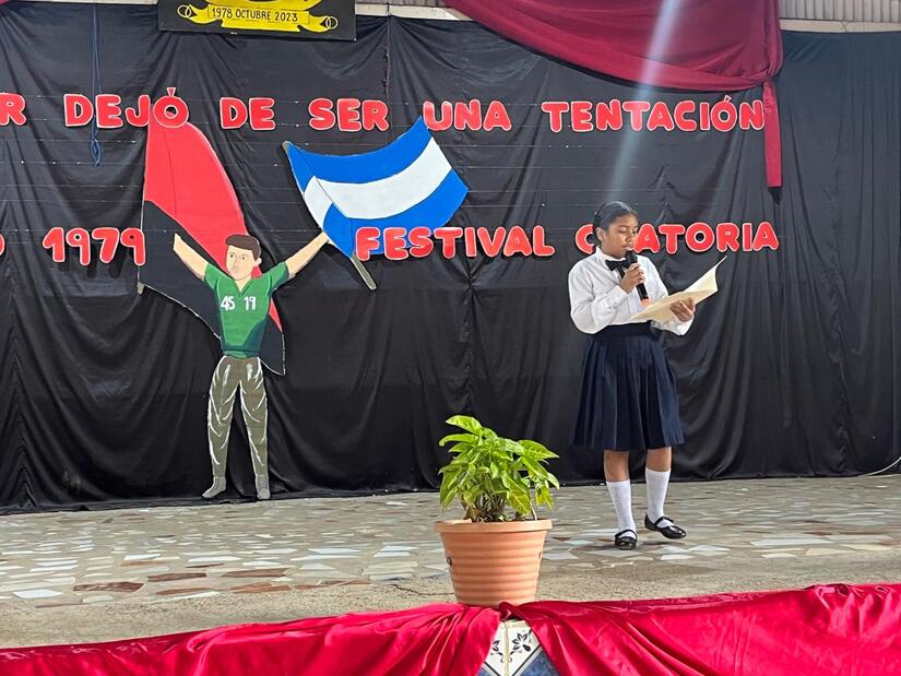 Esta actividad inició con un acto cultural, seguido de la participación de cada estudiante, quienes contaron a través de la oratoria la historia de las luchas y conquistas del pueblo nicaragüense.