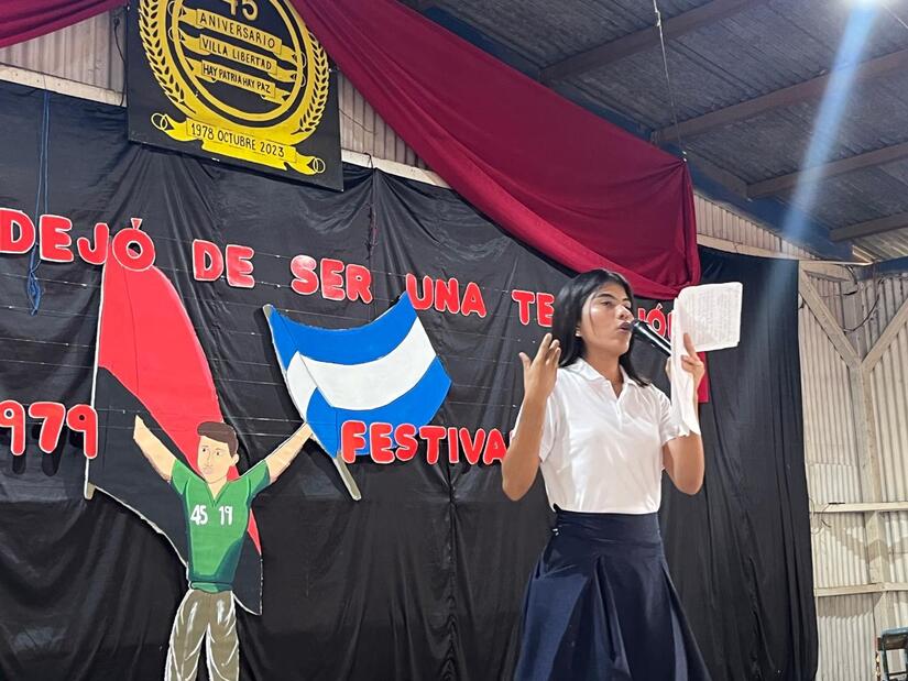 La directora del colegio Villa Libertad, Martha Alina Fuentes Morales, expresó que “este festival promueve que los estudiantes conozcan la historia de la Revolución Popular Sandinista y sobre todo que conozcan a nuestros Héroes y Mártires que lucharon por la libertad de nuestro pueblo”.