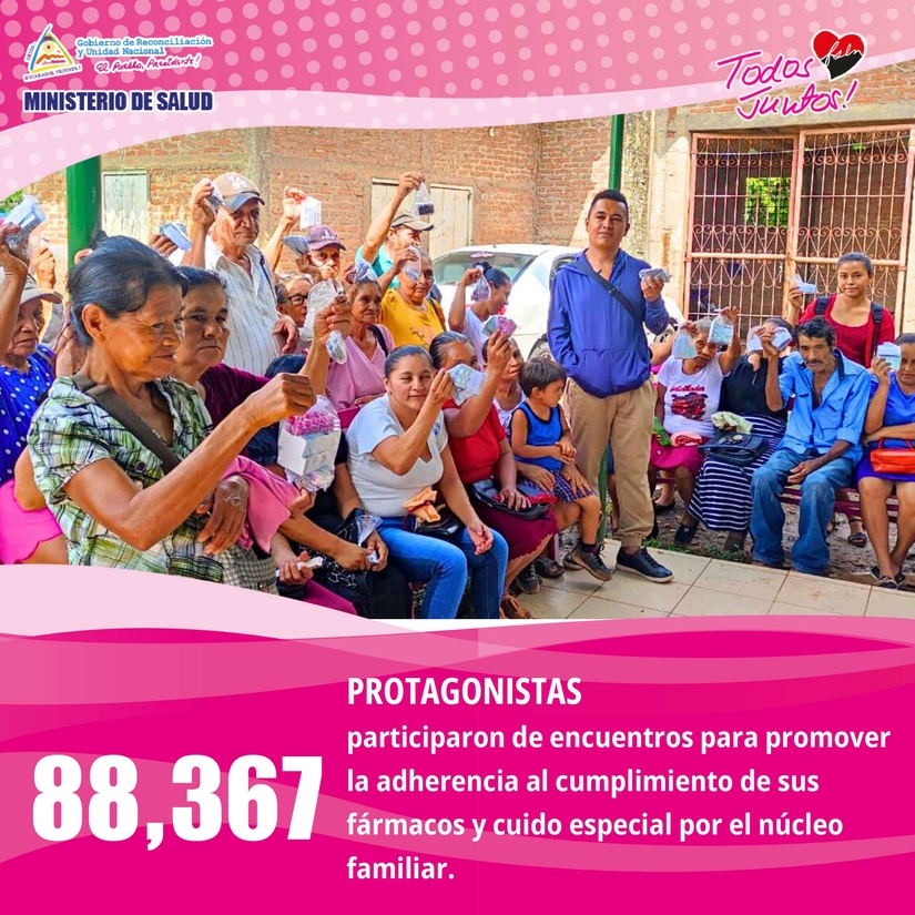 • 88,367 protagonistas participaron en encuentros para promover el cumplimiento de sus fármacos y el cuido especial por parte del núcleo familiar.