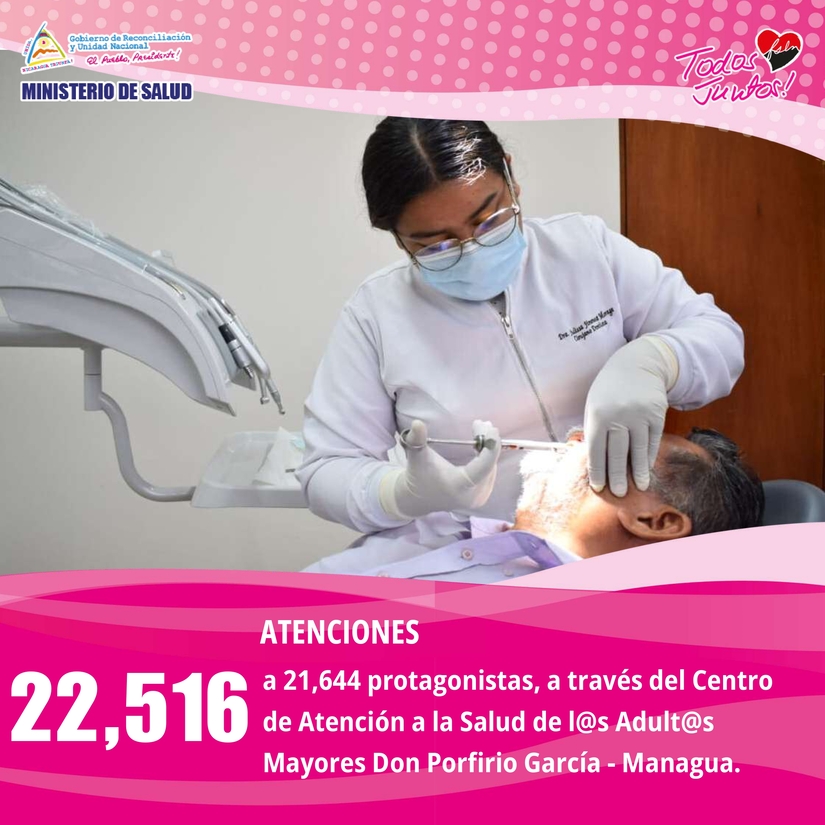 • 22,516 atenciones a 21,644 protagonistas, a través del Centro de Atención a la Salud de l@s Adult@s Mayores Don Porfirio García-Managua.