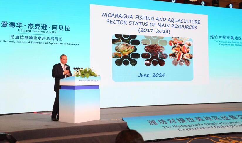 Los Compañeros Bosco Castillo y Edward Jackson, Ministros de Agricultura y Pesca de Nicaragua respectivamente, expusieron acerca de la vocación agrícola y pesquera de nuestro País, sus potencialidades agropecuarias, recursos hídricos y perspectivas favorables de producción y crecimiento económico.