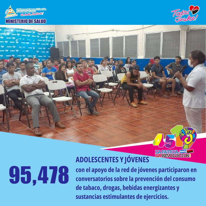 • 95,478 adolescentes y jóvenes con el apoyo de la red de jóvenes participaron en conversatorios sobre la prevención del consumo de tabaco, drogas, bebidas energizantes y sustancias estimulantes de ejercicios.
