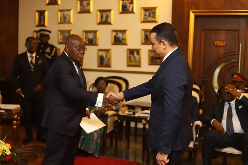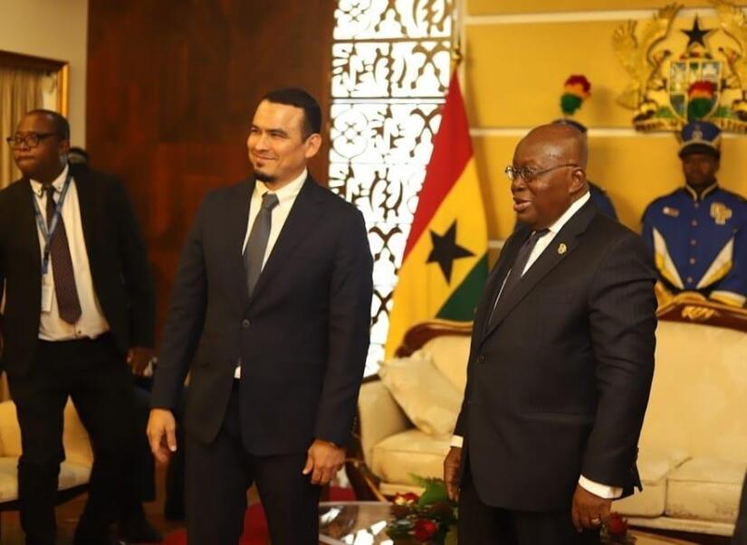 El acto de entrega se realizó en Jubilee House, Casa Presidencial y sede del Gobierno Nacional, fue recibido por su Excelentísimo Señor Nana Akafo-Addo, Presidente de la República, donde el Compañero Andino agradeció por el beneplácito otorgado y transmitió un saludo fraterno en nombre del Pueblo de Nicaragua, del Presidente Comandante Daniel Ortega y la Vicepresidenta, Compañera Rosario Murillo, resaltando los históricos Lazos de Amistad y Colaboración entre Nicaragua y Ghana.