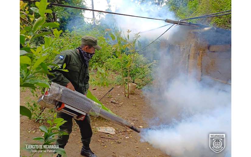 El Ejército de Nicaragua consecuente con el lema de que “Somos el Pueblo mismo uniformado trabajando en su propio beneficio”, del 1 al 5 de julio de 2024, a través del 1 Comando Militar Regional, en coordinación con el Ministerio de Salud (MINSA), participó en jornada de fumigación en el municipio de Pueblo Nuevo, departamento de Estelí; San José de Cusmapa y Palacagüina, departamento de Madriz, con el objetivo de eliminar criaderos de mosquitos transmisores del dengue y otras enfermedades.