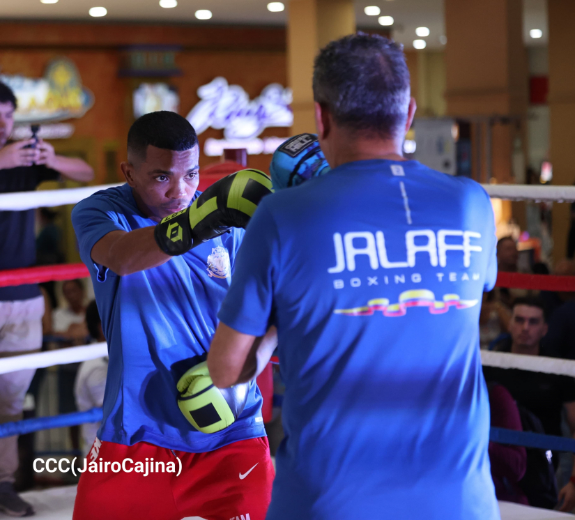 El campeón nicaragüense Román "Chocolatito" González realizó un entrenamiento público junto a los otros boxeadores en el Centro Comercial Las Américas, en Managua, previo a la velada boxística del 12 de julio en el Polideportivo Alexis Argüello.