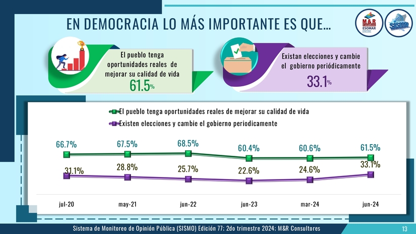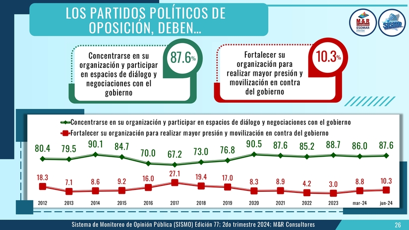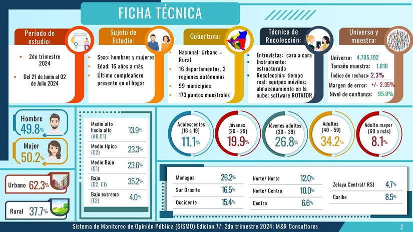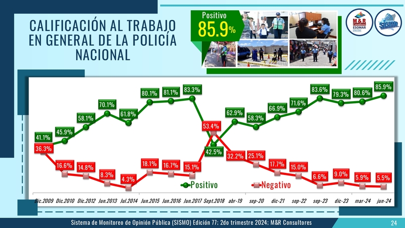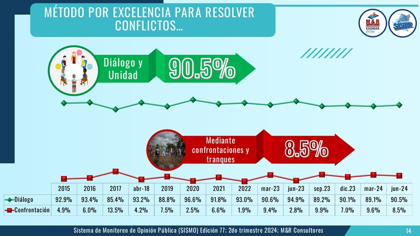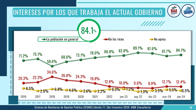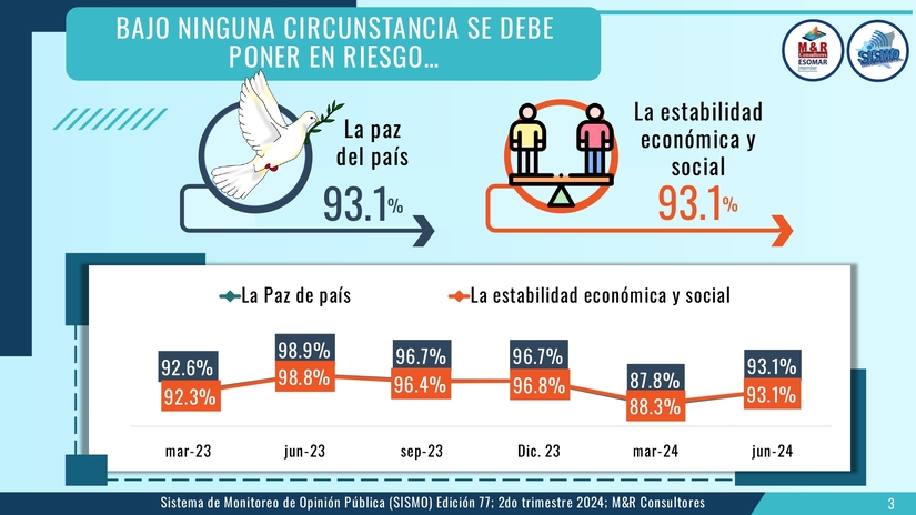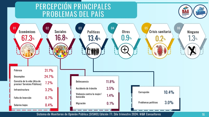 El estudio, presentado por el Gerente General de M&R licenciado Raúl Obregón. corresponde al Sistema de Monitoreo de la Opinión Pública (SISMO) en su edición 77 en este segundo semestre del 2024.
