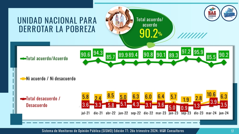 El 90.2 por ciento cree que solamente la unidad nacional es capaz de derrotar la pobreza y el 84.1 por ciento considera que el Gobierno Sandinista tiene interés para trabajar en esa línea.