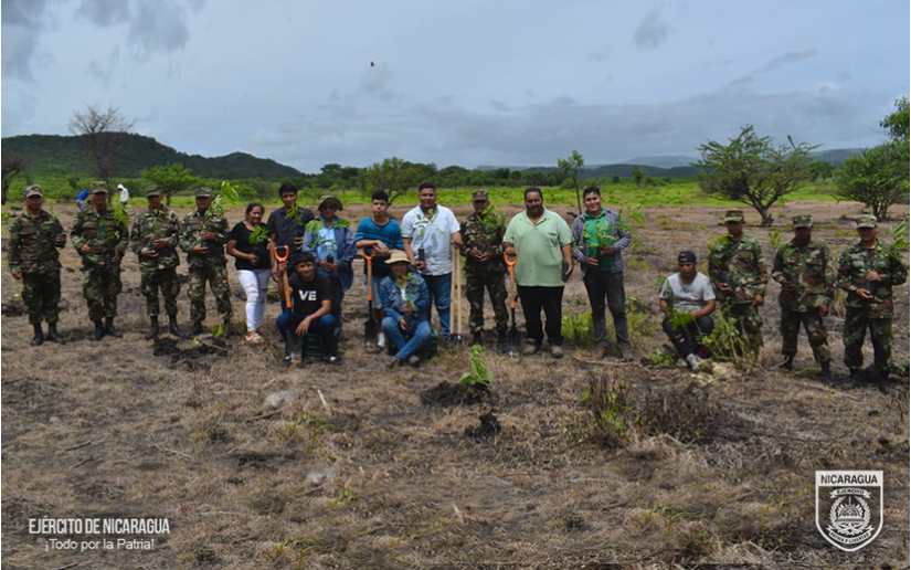 El Ejército de Nicaragua consecuente con el lema de que “Somos el Pueblo mismo uniformado trabajando en su propio beneficio”, el 8 de julio de 2024, a través del 6 Comando Militar Regional, en coordinación con el Instituto Nacional Forestal (INAFOR) y la Asociación de Profesionales para el Desarrollo Integral de Nicaragua (APRODEIN), participó en el lanzamiento de la jornada de reforestación ambiental, en la finca San Vicente, comunidad Las Calabazas, municipio de Ciudad Darío, departamento de Matagalpa.