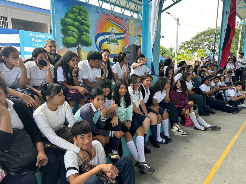 Como parte del cierre del primer semestre del ciclo escolar 2024, estudiantes de secundaria del colegio Blanca Stella Aráuz, celebraron este viernes el Festival de la Alegría por las Victorias Educativas.