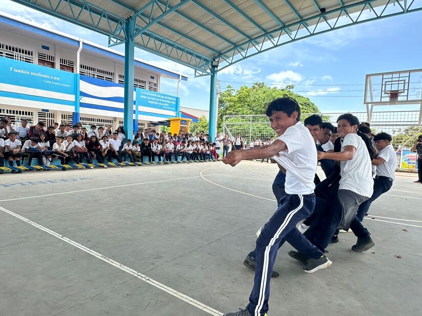 “Me siento contenta por esta actividad muy bonita, donde disfrutamos todos los estudiantes de primer año hasta quinto año, participando en juegos, pero además celebrando los logros en este primer semestre”, compartió la estudiante Junieth Paiz.