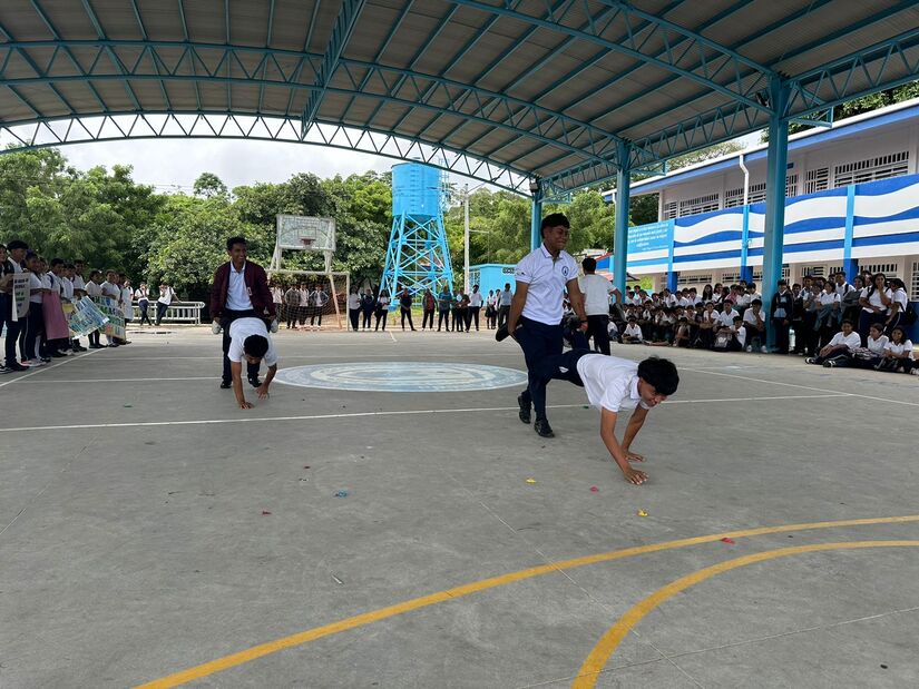 La maestra Ivania del Carmen Duarte, directora del Colegio Blanca Stella Aráuz, compartió que “el día de hoy nuestros jóvenes se van de vacaciones y los despedimos con juegos deportivos, dinámicas, para que ellos se vayan felices de vacaciones”.