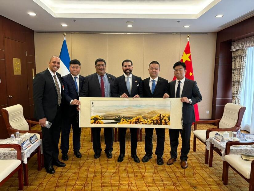 La delegación nicaragüense la conforman los Compañeros Laureano Ortega Murillo, Asesor Presidencial, Valdrack Jaentzke, Ministro Asesor del Presidente para Asuntos Internacionales y Michael Campbell, Embajador de Nicaragua en China.