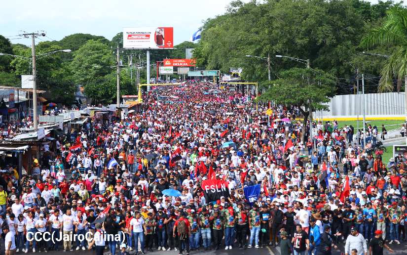 En Managua, las familias revolucionarias con su camiseta, pañoletas y banderas rojinegras, caminaron para celebrar y honrar a los Héroes y Mártires, quienes abonaron con su sangre la Nicaragua libre, que este próximo 19 de julio celebrará 45 años de Revolución.
