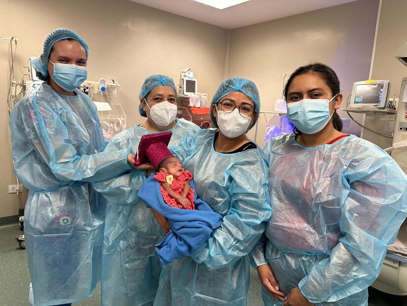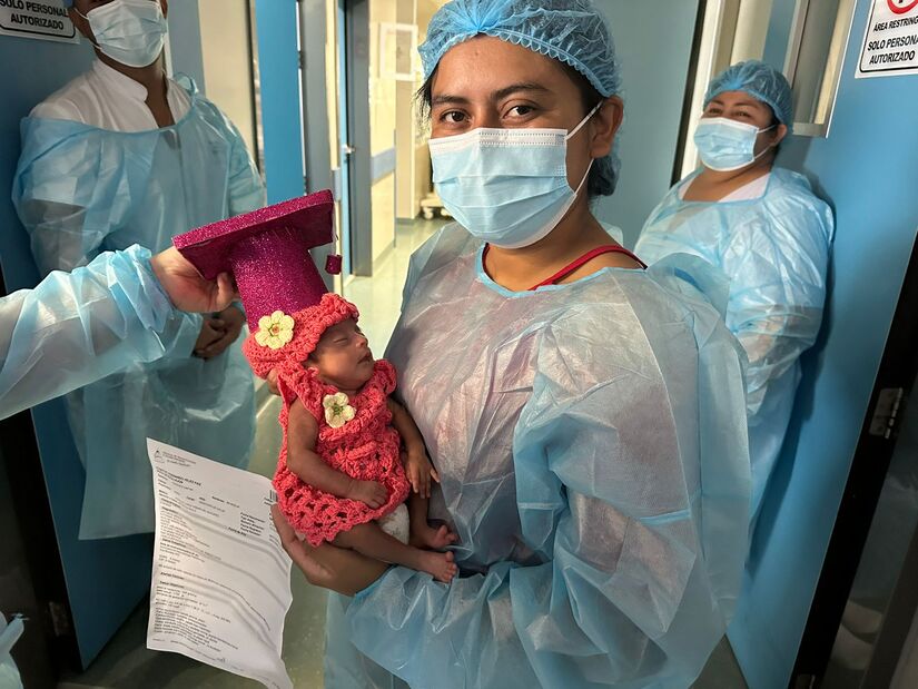 Después de 85 días de estancia, brindando atención médica especializada en Neonatología, con equipos médicos de alta tecnología; hemos logrado que el Bebé crezca de manera saludable con un peso actual de 1,940 gramos, hecho que tiene mucha relevancia para nosotros porque ante todo pronóstico se va el día hoy de alta junto con su Mamá y toda su Familia.