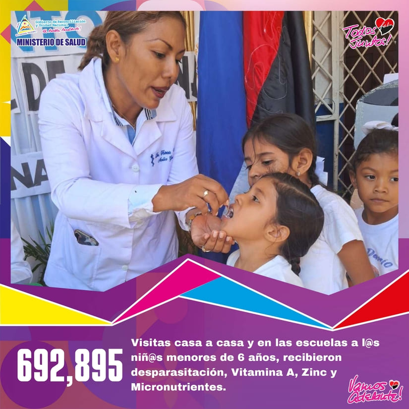 • 692,895 Visitas casa a casa y en las escuelas a l@s Niñ@s menores de 6 años de edad, para entregar desparasitantes, Vitamina A, Zinc y Micronutrientes.