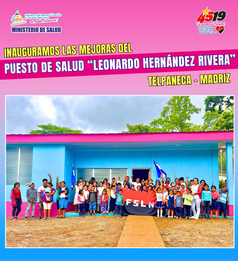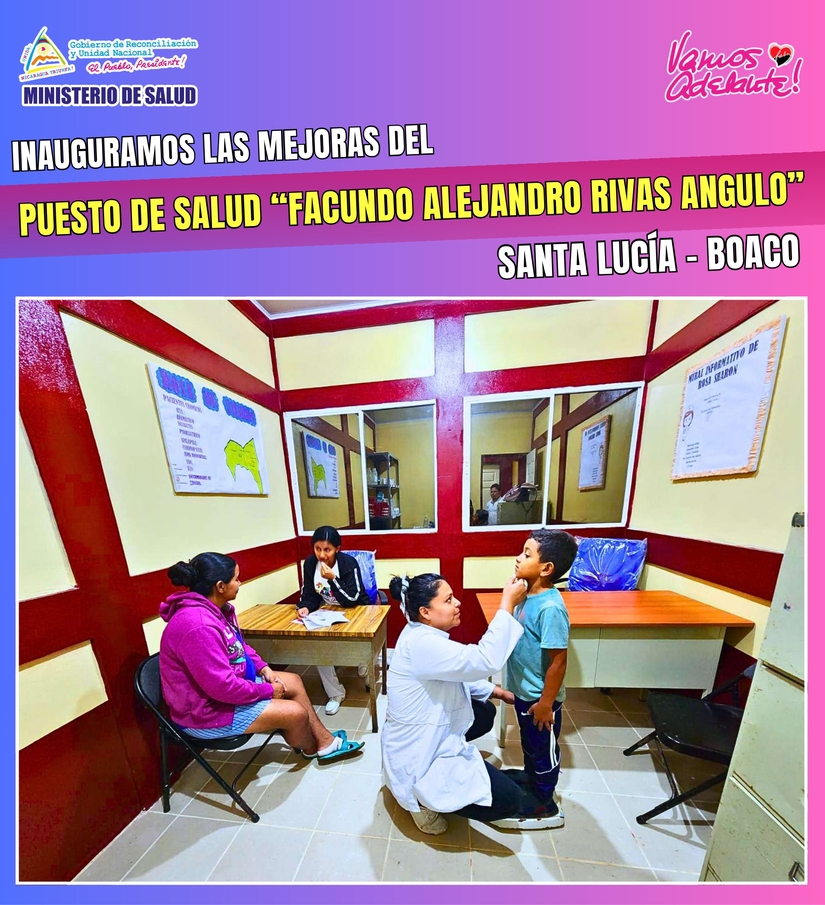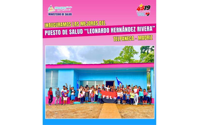 También, entregaremos mejorados el Puesto de Salud “Leonardo Hernández Rivera”, en la Comunidad Amucayan en el Municipio de Telpaneca-Madriz y el Puesto de Salud “Facundo Alejandro Rivas Angulo”, en la Comunidad Las Mercedes, en el Municipio de Santa Lucía-Boaco; para atender en mejores condiciones a más de 2,500 personas que viven en siete comunidades de esos Municipios. Inversión 3.4 millones córdobas.