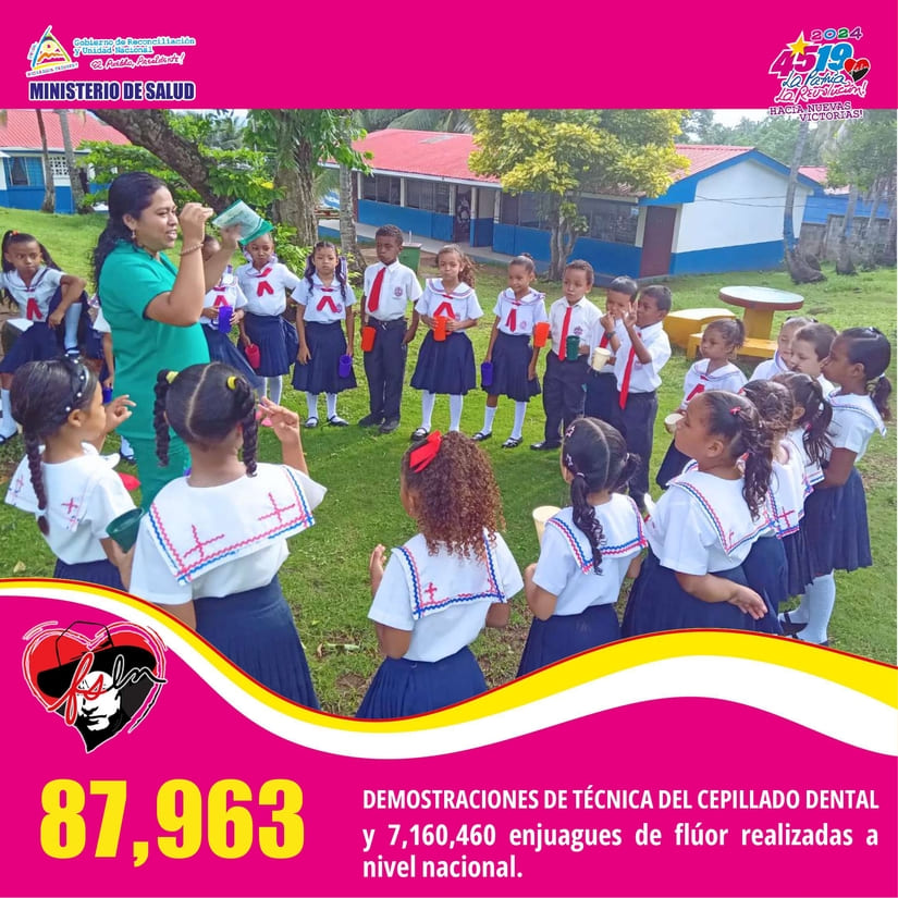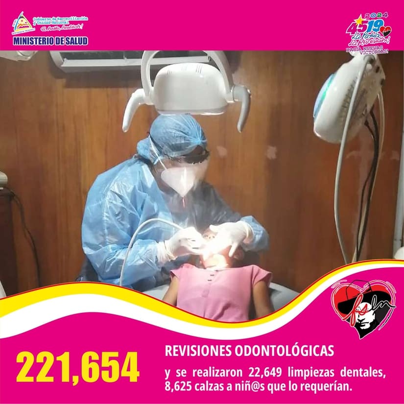 • 221,654 revisiones dentales, además hemos realizado 8,625 calzas, 22,649 limpiezas dentales, 87,963 demostraciones de la buena técnica del cepillado dental y 7,160,460 enjuagues de flúor realizados.