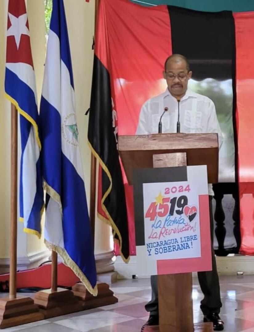 En la terraza de la sede del ICAIC, en La Habana, luego de una intervención musical de la joven y violinista, Laura María López Morgado, que ejecutó magistralmente la canción Soberanía, los oradores, el Representante del Partido Comunista Cubano para América Latina, Compañero Juan Carlos Frómeta-Rosa y la Vicepresidenta del ICAIC, Compañera Noemí Barraza, ofrecieron sus cálidas felicitaciones al Pueblo y Gobierno de Nicaragua, en este 45 Aniversario de la Gesta Heroica del Pueblo nicaragüense, ratificando los Lazos de Amistad y Solidaridad sellados con Sangre Santa, que unen a la Patria de Sandino y Martí. De igual manera, pusieron en valor la capacidad de Resistencia de nuestra Revolución ante las embestidas del imperialismo/neocolonialista y la Voz Firme, Digna, Soberana de Nicaragua en el plano internacional, condenando y exigiendo el fin del bloqueo criminal impuesto contra el Pueblo de Cuba.