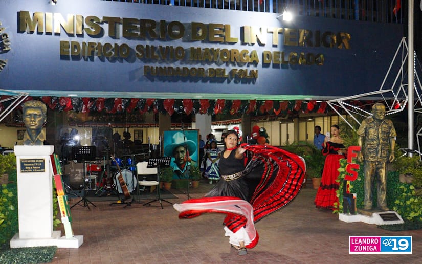 Con la iluminación de la silueta del General Augusto C. Sandino y una verbena cultural el Ministerio del Interior y sus dependencias, celebraron los 45 años de Revolución Popular Sandinista y el Día de la Alegría, una fecha importante para los nicaragüenses.