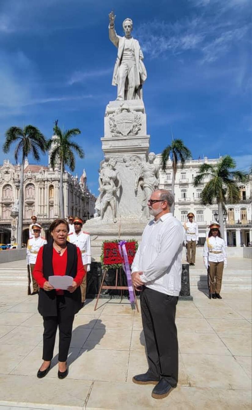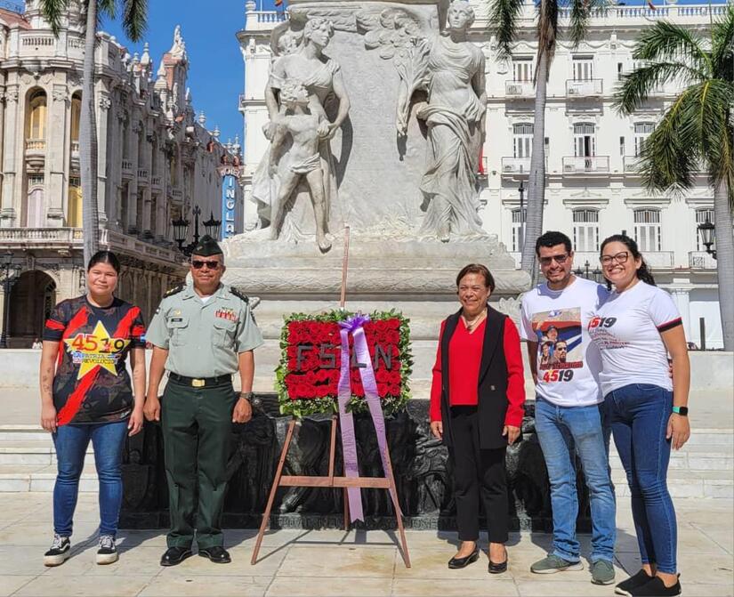 Para recordar, en este 45 Aniversario de la Revolución Popular Sandinista, el valor de los que sueñan y de los que escribieron la gesta de liberación, sobre cuyos hombros descansó y descansa la esperanza, la esperanza que dejó de ser una tentación el 19 de Julio de 1979, la Embajada de Nicaragua en Cuba, en representación del Gobierno de Reconciliación y Unidad Nacional, depositó una ofrenda floral en la estatua del Apóstol José Martí en el Parque Central de La Habana.