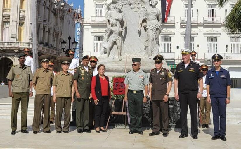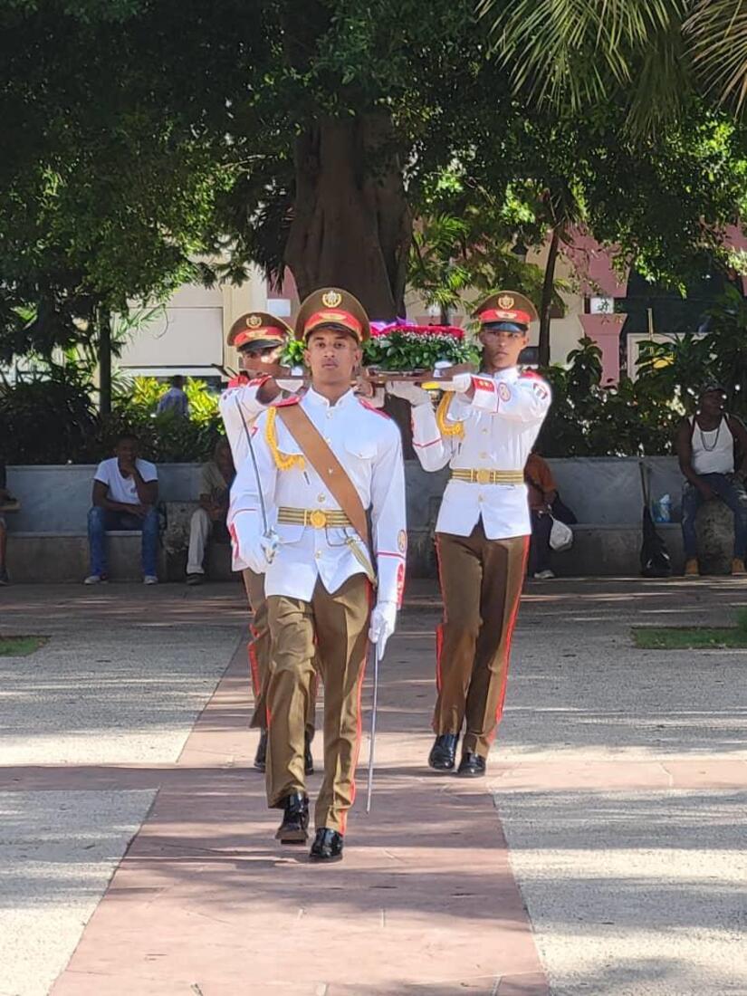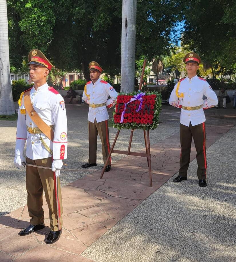 Las flores para los Héroes de Nicaragua y de Nuestra América Latina y Caribeña, de todos los Tiempos, que ofrendaron sus Vidas para que la Luz del General de Hombres y Mujeres Libres, iluminara el Siempre Más Allá de nuestra Revolución, fue depositada por nuestra Embajadora, Compañera Guisell Morales Echaverry y el Director General de la Dirección de América Latina del Ministerio de Relaciones Exteriores de Cuba, Compañero Eugenio Martínez Enriquez, acompañada de una guardia de honor.