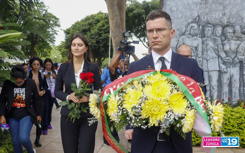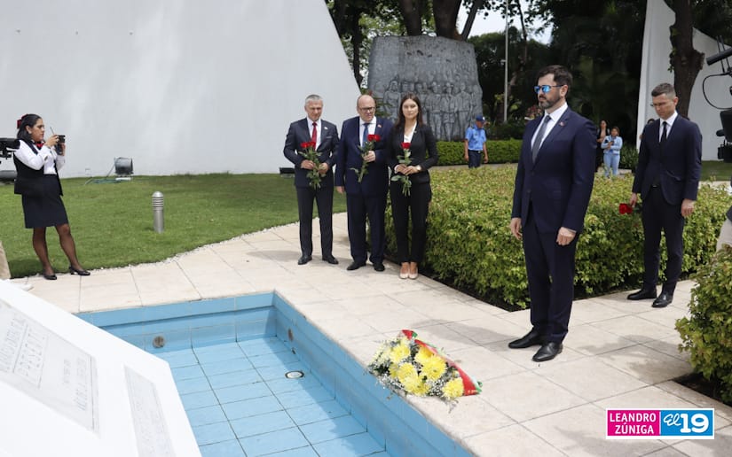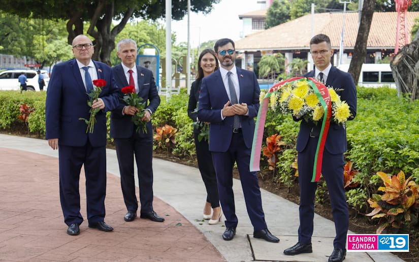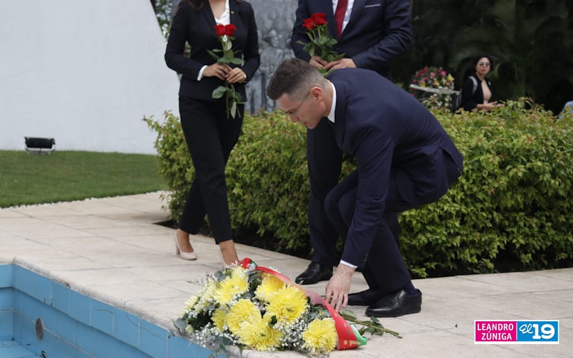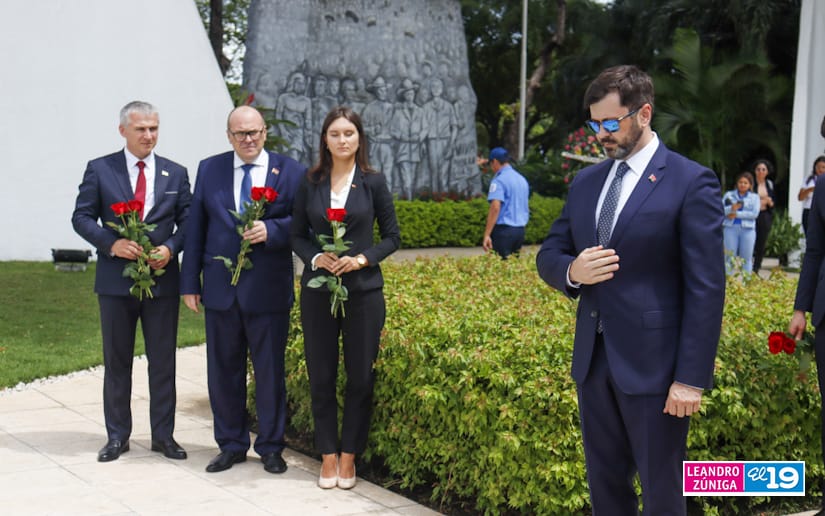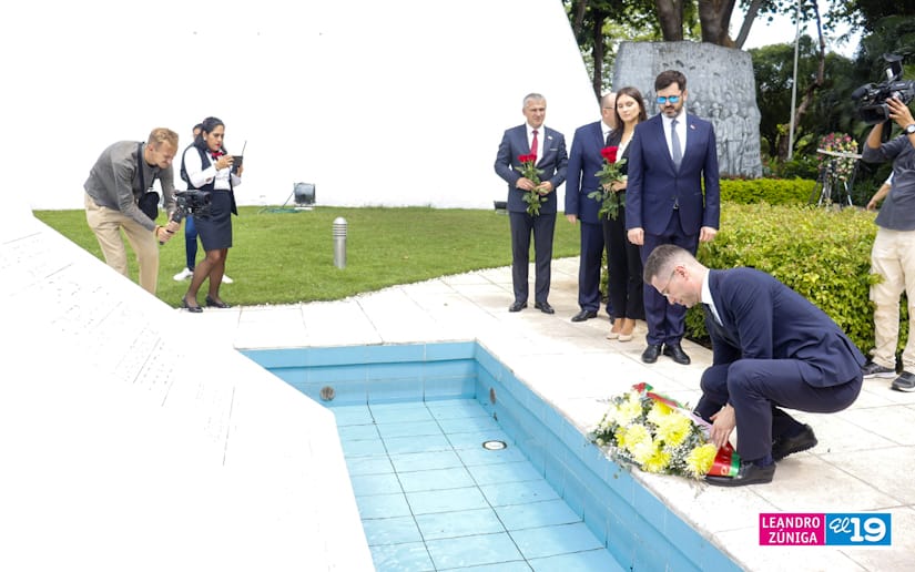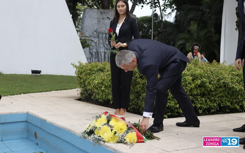 Representantes de la delegación de la República de Belarús visitaron el Mausoleo de la Revolución colocando ofrendas flores, como muestra de homenaje al legado de los Héroes de Nicaragua.