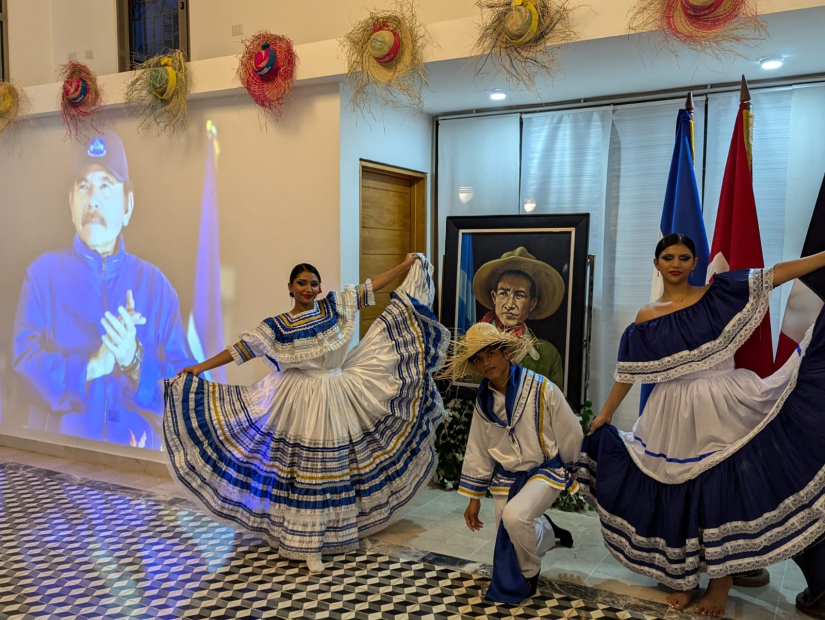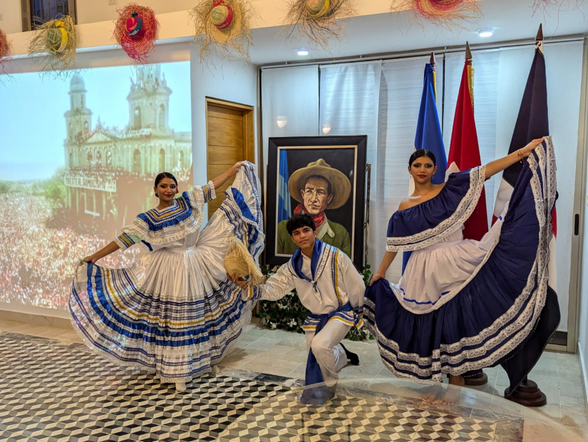 Durante la Conmemoración jóvenes de la Comunidad nicaragüense realizaron presentación artística de nuestro folklore, cerrando con un convivio para disfrutar de la gastronomía nacional.