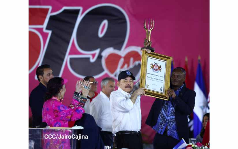 Desde Sudáfrica, su Alteza Real Zolani Mkiva, Diputado del Parlamento de Sudáfrica y Presidente de la Fundación Humanitaria Mkiva, Miembro del Comité Nacional del Congreso Nacional Africano, asistió a la celebración del 45/19; y le entregó un reconocimiento al Presidente Comandante Daniel Ortega.