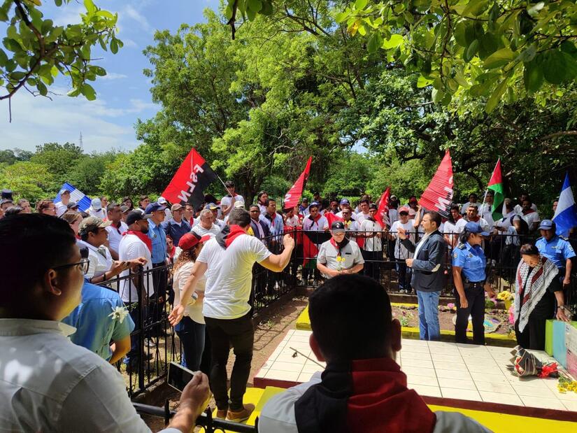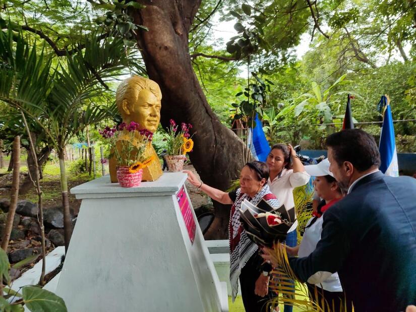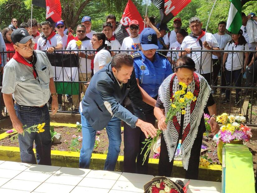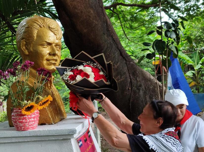 "Hoy estuvo en Puerto Momotombo donde está Patricio Argüello Ryan, también héroe de ambos pueblos, héroe nacional de Nicaragua. Ahí estuvo colocando ofrendas y estuvimos con los jóvenes que son el futuro de la patria, el patrimonio nacional de Nicaragua, con flores y canto celebrando la vida de los héroes, y celebrando que en Nicaragua Siempre será 19 de Julio".