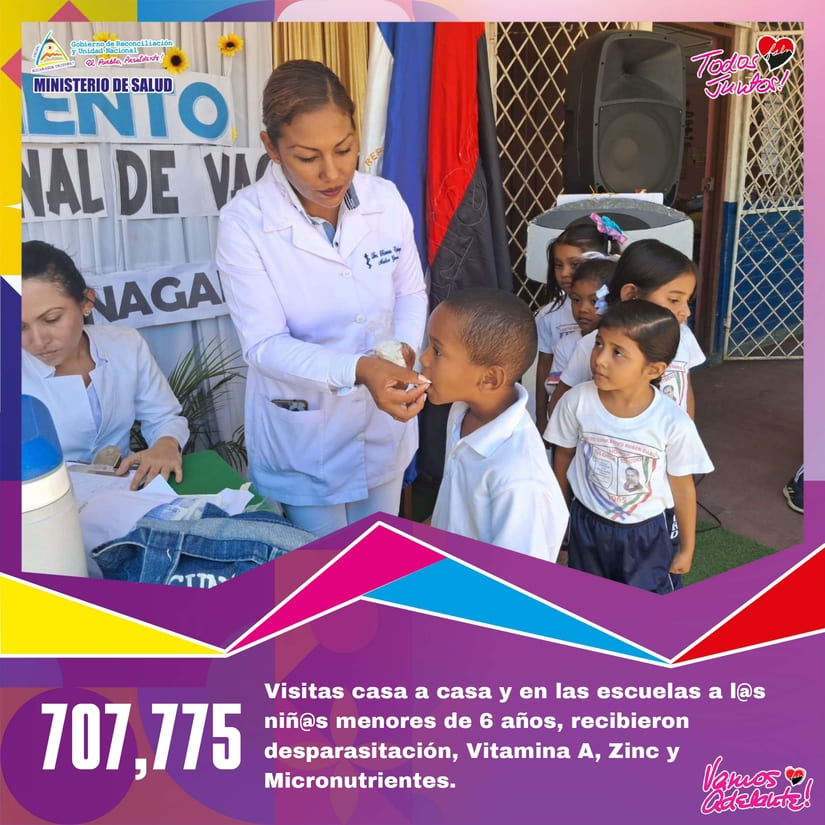 • 707,775 Visitas casa a casa y en las escuelas a l@s Niñ@s menores de 6 años, recibieron desparasitación, Vitamina A, Zinc y Micronutrientes.