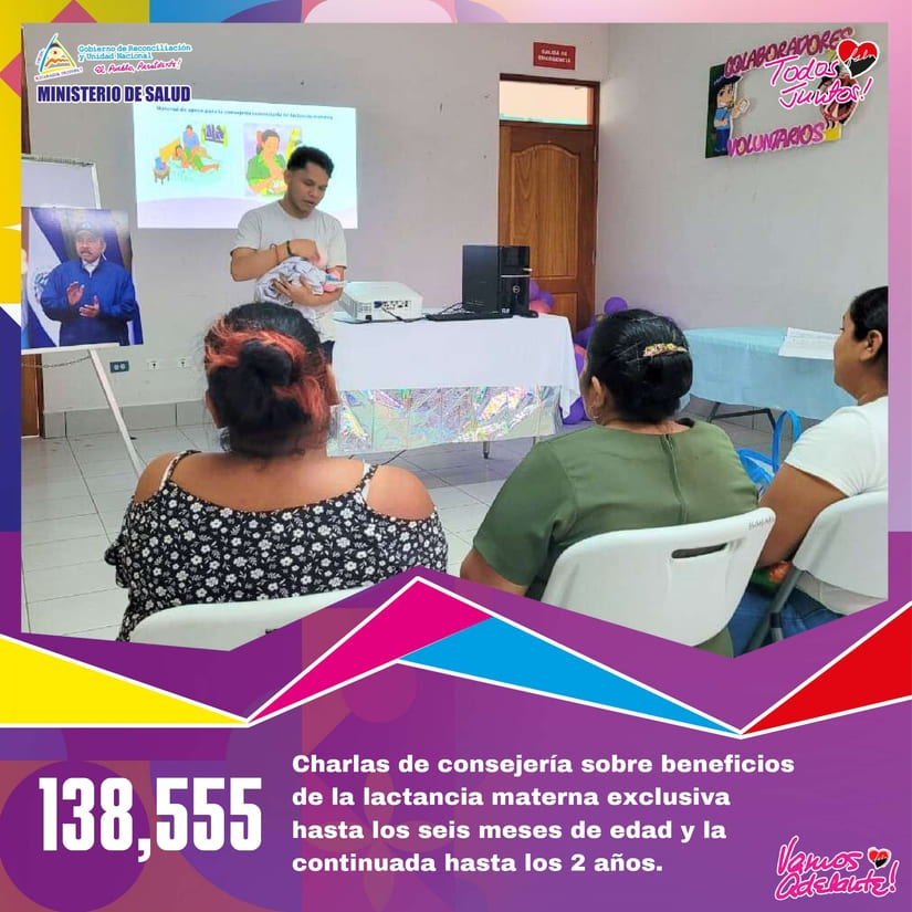 • 138,555 Charlas de consejería sobre beneficios de la lactancia materna exclusiva hasta los seis meses de edad y la continuada hasta los 2 años.
