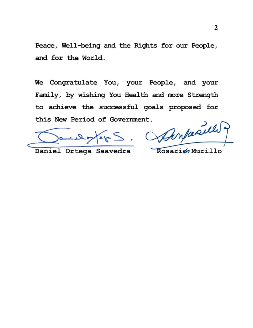 Reiteramos a Usted nuestra plena disposición de fortalecer lazos históricos, y de continuar librando las Batallas indispensables para consolidar Paz, Bienestar y Derechos para nuestros Pueblos, y para el Mundo.