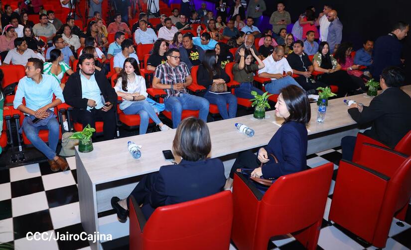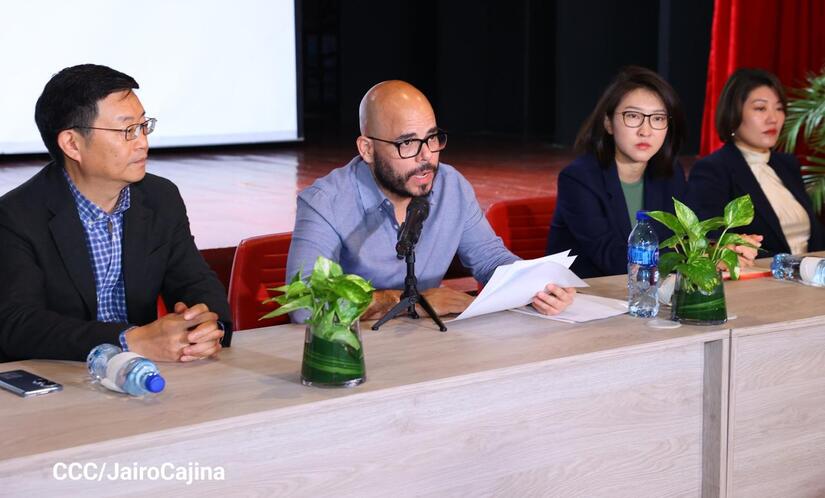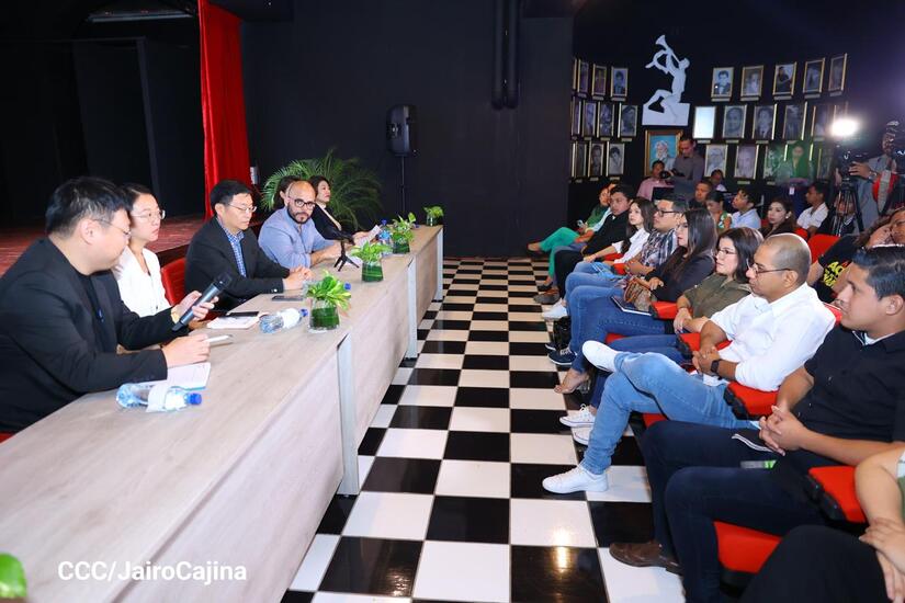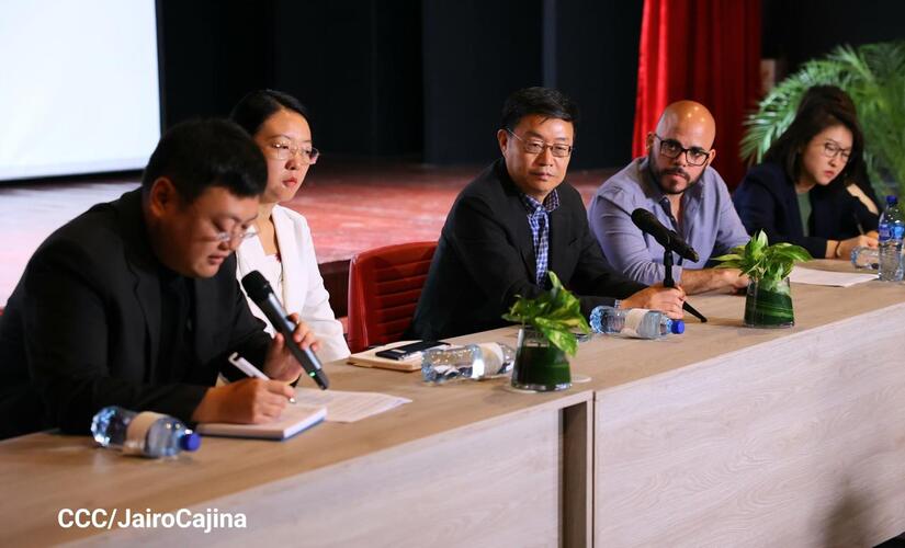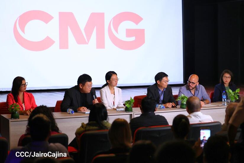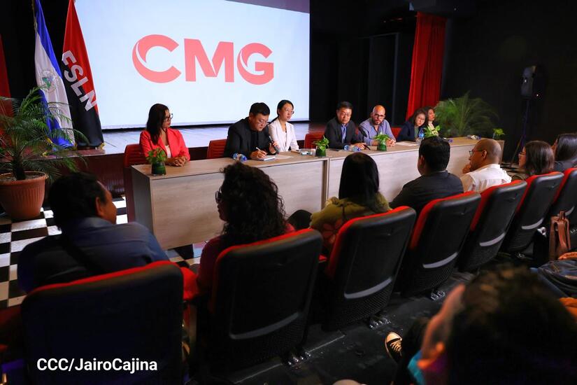 “China Media Group (CMG) está integrado por la televisión central de China, la radio internacional, la Radio Nacional del pueblo chino y CGTN. Cuenta con unos 50 mil empleados, con 51 canales televisivos y 7 canales de difusión internacional. Estos 7 canales están dentro del marco de CGTN en inglés, español, árabe, francés. Contamos con más de 80 radios internacionales en idiomas extranjeros y 3 portadas. Tenemos aplicaciones para celulares, Cinemateca en China, un centro de traducción y producción de obras cinematográficas, entidades encargadas de la comunicación internacional en Europa y Asia, contamos con varias empresas que se encargan de la producción de las obras cinematográficas. Espero que puedan verse las obras que vamos a presentar a ustedes en los medios de Nicaragua, en fin, es un placer poder promover distintos tipos de colaboración con ustedes, en especial en los intercambios de cultura y cine. Aprovechamos esta colaboración para dar inicio a nuevas colaboraciones entre los dos países”, detalló Zhu Boying.