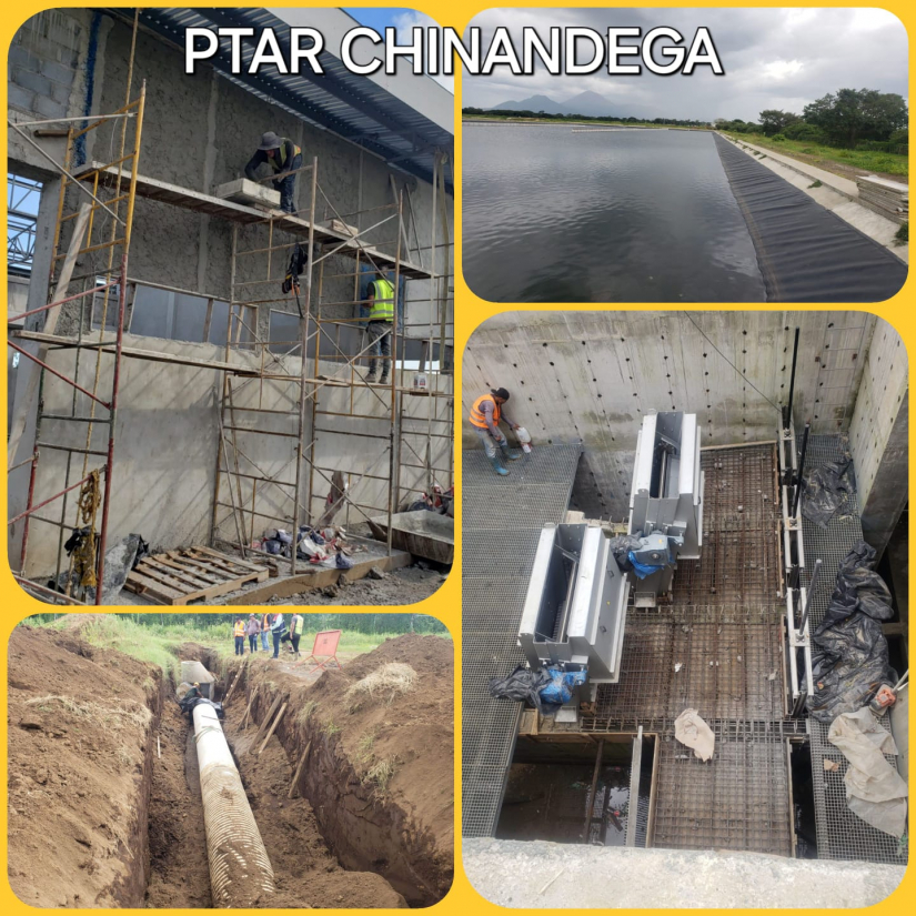Esta nueva planta tiene un 96% de avance constructivo y se estima su puesta en marcha para fines de este año, Dios Mediante; lo que permitirá procesar las aguas residuales generadas por unas 25,500 Familias, contribuyendo en gran manera en el Saneamiento del Río Acome; mejorando sustancialmente las condiciones ambientales de todo el Municipio de Chinandega.