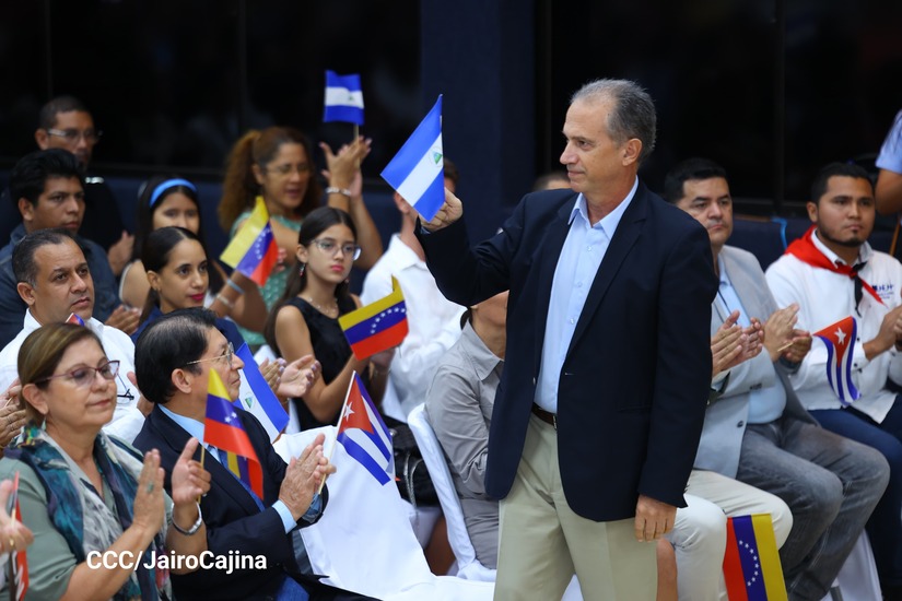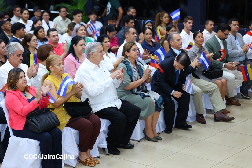 El acto fue presidido por la Maestra Ramona Rodríguez, Rectora de UNAN Managua y Presidenta del CNU; el Canciller de Nicaragua, Denis Moncada, así como el Embajador de Venezuela, Sr. Francisco Javier Arrúe y el Encargado de Negocios de la Embajada de Cuba en Nicaragua, Sr. Sergio González González, y el compañero Douglas Lara, Presidente de UNEN Nacional.