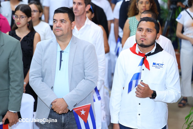 En conmemoración del Día de la Rebeldía Nacional de Cuba, cuando se cumplen 71 años del Asalto al Cuartel Moncada y en saludo a la que será una gran victoria electoral contundente del hermano pueblo y gobierno de Venezuela, encabezado por el compañero Nicolás Maduro, en la UNAN-Managua se realizó un acto con la presencia de la comunidad educativa y representantes diplomáticos de ambas naciones homenajeadas.