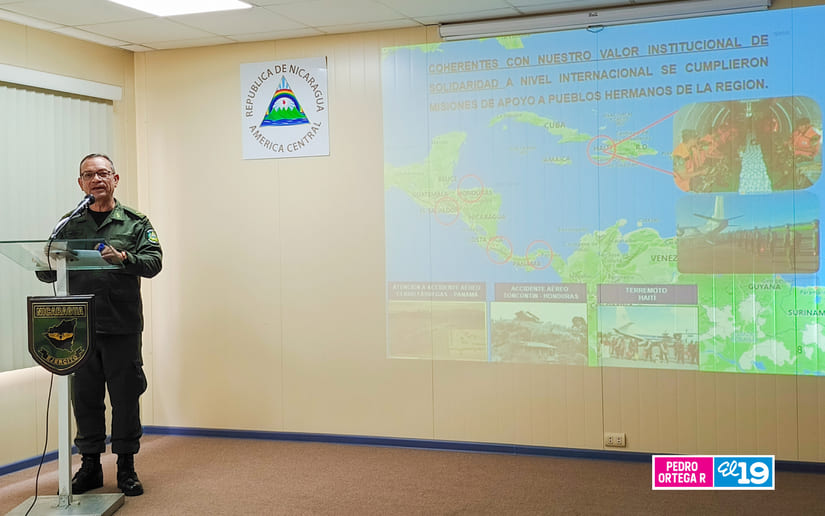 “De acuerdo a los planes establecidos en el Ejército de Nicaragua, la Fuerza Aérea dispone sus fuerzas y medios en la protección de nuestro espacio aéreo y enfrentar las amenazas del narcotráfico y el crimen organizado, mediante la Estrategia Nacional del Muro de Contención. Somos el pueblo mismo uniformado, trabajando en su propio beneficio, la Fuerza Aérea en estos 45 años, ha asistido a nuestra población ante la ocurrencia de desastres naturales. Hemos cumplido con nuestras misiones y tareas en defensa y apoyo a nuestra población sin distingo de ninguna naturaleza, cumpliendo misiones de búsqueda, salvamento y rescate”, afirmó el alto jefe militar.