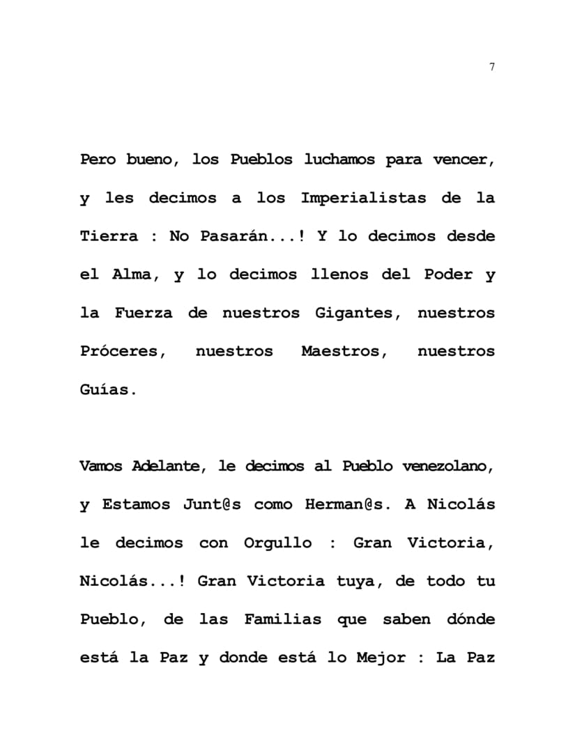 But in fact, we the Peoples fight to overcome, and we say to the Imperialists of the Earth: You will not pass...! We say it from the Soul, we say it full of the Power and Strength of our Great Forebears, our Heroes, our Teachers, our Guides.