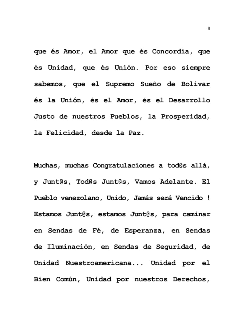 Muchas, muchas Congratulaciones a tod@s allá, y Junt@s, Tod@s Junt@s, Vamos Adelante. El Pueblo venezolano, Unido, Jamás será Vencido ! Estamos Junt@s, estamos Junt@s, para caminar en Sendas de Fé, de Esperanza, en Sendas de Iluminación, en Sendas de Seguridad, de Unidad Nuestroamericana... Unidad por el Bien Común, Unidad por nuestros Derechos, Unidad por nuestra Alegría, y Unidad para crecer, para prosperar, para avanzar.