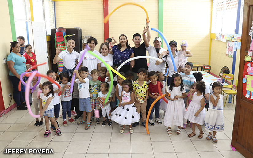 Bajo el lema “Con amor y ternura para la niñez”, los pequeños disfrutaron de una serie de actividades infantiles organizadas por los promotores de la Juventud Sandinista 19 de Julio.